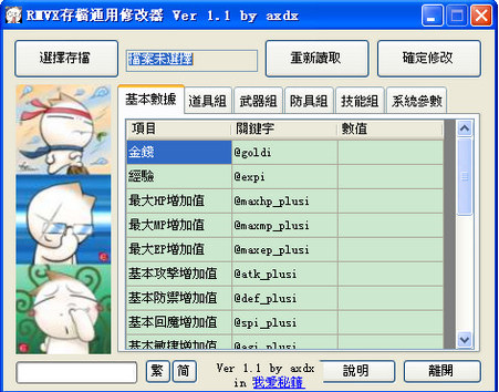 2.項目: 21項包括金錢, 經(jīng)驗EXP, 最大HP增加值, 最大MP增加值, 最大EP增加值