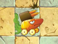 技能:發(fā)射一枚2000耐久的啞彈,倒插在地上阻擋僵尸前進(jìn)(降落點(diǎn)為正前方第一個僵尸的左側(cè)1~2格,正前方無僵尸時則落在本行左起第九格)。啞彈被僵尸消滅或被玩家鏟除時會爆炸,在以自身為中心的3x3范圍內(nèi)造成1800傷害,若降落點(diǎn)內(nèi)無法種植則會直接爆炸。