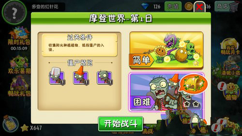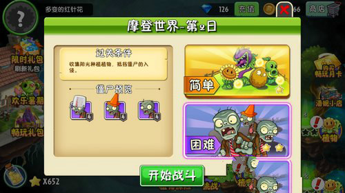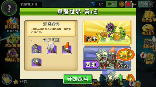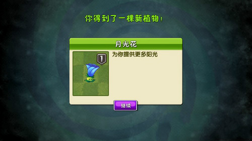 通過摩登世界第一日簡單模式,關(guān)卡贈送月光花,如圖: