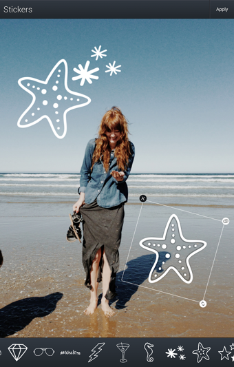 -我們呼聲最高的功能來了!現(xiàn)在您可以在您的相片上面覆蓋上大量各種創(chuàng)意蠟紙了。