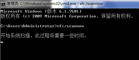 在命令窗口輸入sfc/scannow然后回車,等待系統(tǒng)掃描修復(fù)