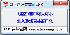 迷茫CF窗口化 v1.9 綠色版 這款CF窗口化工具是CF迷茫輔助的作品,進(jìn)入游戲后直接窗口化,支持窗口大小的拖動(dòng),操作簡單,歡迎下載體驗(yàn)。