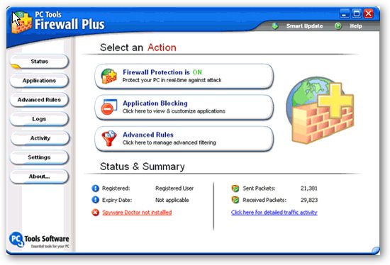 PC Tools Firewall Plus V7.0.0.123 多國語言免費版 PC Tools Firewall Plus是一個強大的windows系統(tǒng)個人防火墻,它可以可以輕松控制來自網(wǎng)絡的流量出入行為,并控制應用程序的網(wǎng)絡訪問. 監(jiān)測網(wǎng)絡連接,防火墻可以阻止Trojans, backdoors, keyloggers 等惡意破壞你的電腦,竊取你的私人信息.