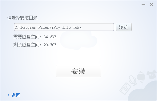 您可以點擊上圖中的【瀏覽】按鈕,選擇訊飛輸入法PC版安裝的路徑,選擇好路勁后,點擊此界面上的【安裝】按鈕即可自動安裝,如下圖所示:
