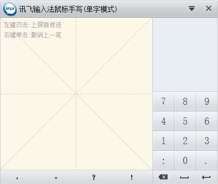 如您的電腦沒有觸摸板,則只能進入鼠標手寫模式,界面示意如下: