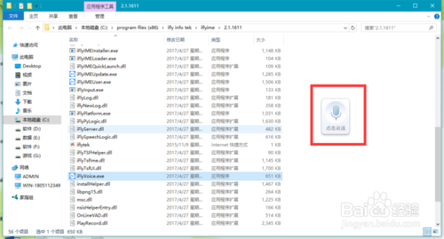 接著我們在軟件的路徑中打開一個名為iFlyVoice的快捷方式,此時我們會看到右下角彈出一個麥克風(fēng)的窗口,我們點擊那個麥克風(fēng);參考下圖