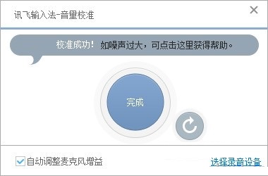 如噪聲過大,可以按照上方提示點擊進入幫助。點擊完成即可結(jié)束語音校準。點擊重新校準按鈕即可重新進行校準。點擊選擇錄音設(shè)備即可設(shè)置默認的錄音設(shè)備。