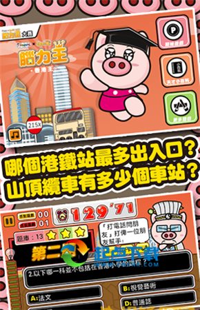 iHappy x 3國小豬「腦力王」- 天才小百科 益智游戲系列﹗最新一輯「香港王」題目內(nèi)容搜羅香港的大事小事,包括衣、食、住、行及地標(biāo)景點(diǎn)等等,包??计鹉?快來挑戰(zhàn)吧。