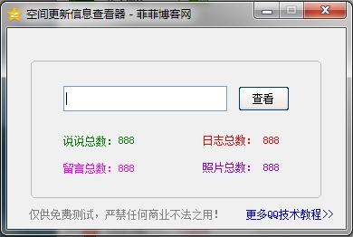想進(jìn)某人的QQ空間,卻被訪問(wèn)權(quán)限無(wú)情的攔在了門(mén)外。的確目前暫時(shí)還木有很好的方法可以直接突破介個(gè)限制。但是我們卻可以用一段兒代碼接口來(lái)探測(cè)出目標(biāo)空間的相關(guān)動(dòng)態(tài)的更新數(shù)據(jù)哦,寫(xiě)了一個(gè)可以幫助你快速探測(cè)加密空間更新動(dòng)態(tài)數(shù)量的小程序(不用登陸),需要的話可以下載空間更新信息查看器免費(fèi)測(cè)試使用嘍!