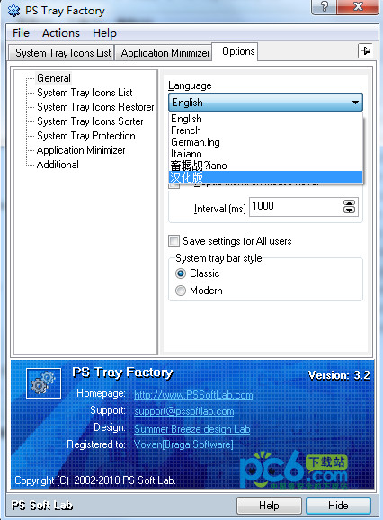 給系統(tǒng)右下角托盤(pán)小圖標(biāo)隱藏和排序的工具,網(wǎng)絡(luò)上流傳的都是3.0的破解版,使用中還有些小問(wèn)題,不太好用,這個(gè)是我自己整理的,使用的是3.2的內(nèi)核,和優(yōu)化過(guò)的漢化語(yǔ)言包,沒(méi)有3.0的使用bug。