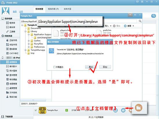 玩正版游戲碰到內購,這世上有一種東西叫修改存檔,打開iTools應用程序,點擊“文檔管理”,直接覆蓋游戲存檔文件,無限金幣鉆石任你high,輕松通關不是夢!