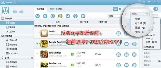 多人共用一臺電腦,本地程序很多很雜怎么一鍵管理?在iTools程序庫里面的定制app標簽功能,讓你一鍵管理屬于你的全部APP。