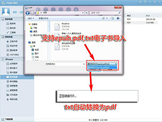 點擊【圖書管理】,把電子書直接拖入iTools界面,iTools可以直接把txt轉換為PDF。