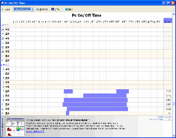 無需統(tǒng)計(jì)立刻就夠看到數(shù)據(jù),PC On/Off Time不用一直在你電腦中自動(dòng)打開它的進(jìn)程,所以首次運(yùn)行就可以看到結(jié)果。