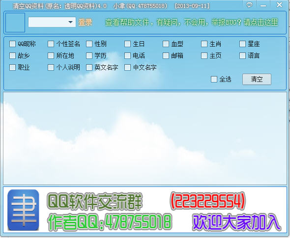 清空QQ資料 v4.0 綠色版 有不少網(wǎng)友提問“怎么把qq資料清空”,以前總是得找相應(yīng)的QQ修改版才能達到QQ資料為空的狀態(tài),現(xiàn)在小編給大家的這個“清空QQ資料”,可以把居住地、性別等QQ資料的數(shù)據(jù)設(shè)置為空白,修改很方便。