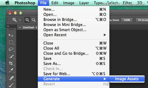 通過文件菜單開啟智能切圖,F(xiàn)ile -> Generate -> Image Assets