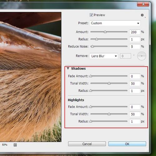 此外,你可以控制銳化在陰影和高光的程度。