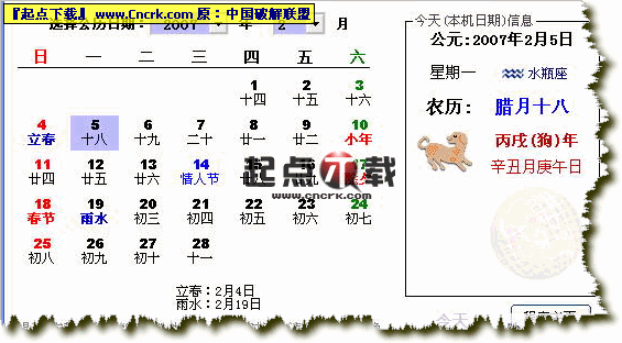 實(shí)用的萬年歷程序。運(yùn)行程序后,通過選擇“年”、“月”即可查看當(dāng)月的公歷和農(nóng)歷,并顯示所選“日”的詳細(xì)信息,包括公歷日期、農(nóng)歷日期、星期、農(nóng)歷干支、本日星座、本日節(jié)日等信息…