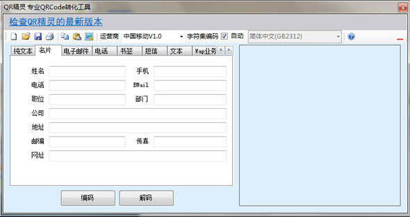 QR精靈是一款方便實(shí)用的信息轉(zhuǎn)化工具。支持多種版本,版本之間自動(dòng)轉(zhuǎn)化。 2.10版己全面支持6個(gè)主流電信運(yùn)營(yíng)商:DoCoMo(日本)、SoftBank(日本)、中國(guó)移動(dòng)V1.0、中國(guó)移動(dòng)V2.0、中國(guó)聯(lián)通、中華電信(臺(tái)灣)。并且這個(gè)軟件是完全免費(fèi)的。