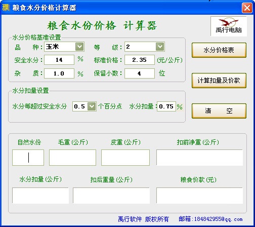 糧食水份價格計算器是一款綠色的糧食水分和價格的計算軟件,軟件界面簡潔,操作方便。