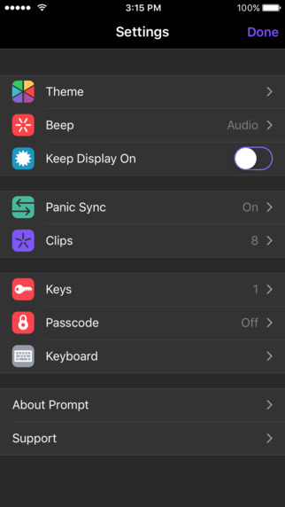Prompt是一個(gè)輕量級(jí)SSH客戶端,支持收藏、自定義快捷鍵、自動(dòng)填寫、密鑰文件、藍(lán)牙鍵盤、密碼鎖、Bonjour服務(wù)器探測(cè)等。Prompt提供了黑底白字和白底黑字兩種界面風(fēng)格,可以設(shè)置大字體,自動(dòng)完成功能可以記住你最常用的命令,為了安全起見,你可以設(shè)置密碼保護(hù),甚至通過iTunes文件共享來(lái)導(dǎo)入SSHKeyPairs.