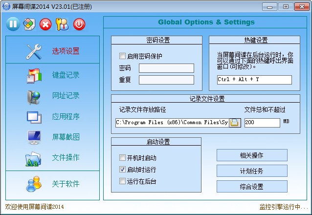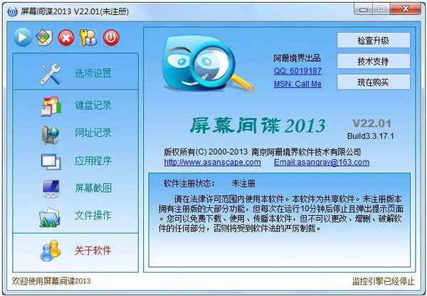 屏幕間諜2014是一款很給力的電腦監(jiān)視軟件。安裝上屏幕間諜2014的電腦有過所有操作行為都會被記錄,包括鍵盤按鍵和聊天記錄。這款軟件常用于員工電腦使用記錄,和孩子上網(wǎng)監(jiān)察,有需要的歡迎下載。