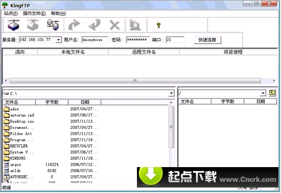kingftp V1.604 綠色特別版 1、 kingftp是一套操作簡單、使用方便的FTP軟件,只需點擊一下按紐、拖動一下鼠標(biāo)就可以完成上傳下載的工作;