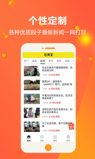 任務(wù)寶是集合各種網(wǎng)賺任務(wù)在內(nèi)的大型平臺(tái),其中包括文章分享、電商、高額等多種類型。提供給學(xué)生、寶媽等兼職人員不同的兼職選擇。另外平臺(tái)還有每日現(xiàn)金抽獎(jiǎng),獎(jiǎng)勵(lì)0.05~1000元不等。同時(shí)還有各種線上活動(dòng),精彩不斷。
