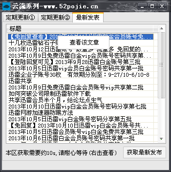 云流迅雷實(shí)時(shí)更新VIP獲取器 1.0 綠色版 【概括介紹】