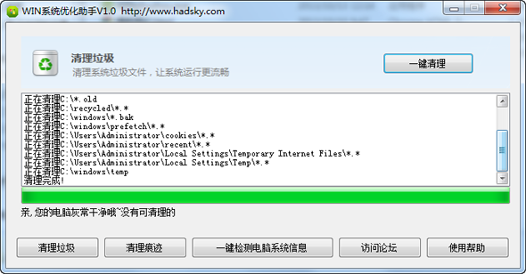 WIN系統(tǒng)優(yōu)化助手是一款windows系統(tǒng)優(yōu)化工具,可以一鍵清理垃圾、清理痕跡,還能查看電腦系統(tǒng)信息,使用非常簡單。