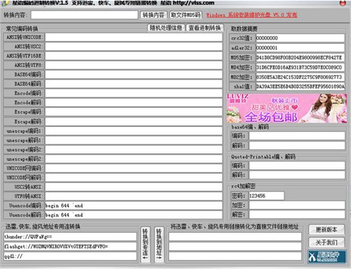 星語(yǔ)編碼進(jìn)制轉(zhuǎn)換是一款全能的編碼轉(zhuǎn)換、MD5破解、進(jìn)制轉(zhuǎn)換器 支持迅雷、快車、旋風(fēng)專用鏈接轉(zhuǎn)換。星語(yǔ)編碼進(jìn)制轉(zhuǎn)換器并且可以支持當(dāng)前主流的編碼。