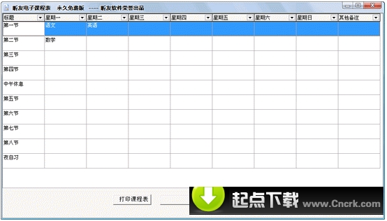 小巧易用的電子課程表,可方便任意編寫課程表及課程安排,靈活設(shè)置打印的形式,永久免費,綠色軟件。