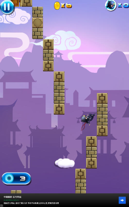 -點擊屏幕翻轉(zhuǎn)忍者左,右通過不同的障礙,避免塊,以及殺死敵人;