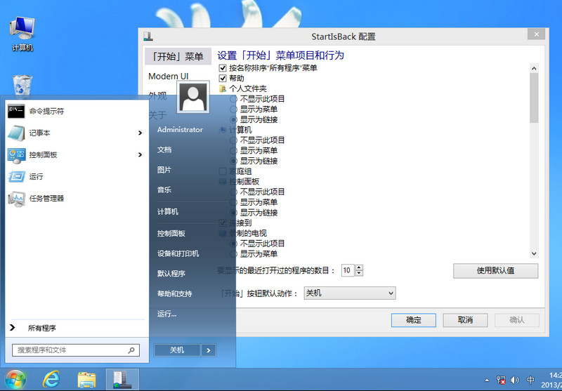 StartIsBack+ 特別版它也支持修改化設(shè)置,你可更改開(kāi)始菜單及開(kāi)始按鈕外觀、樣式及風(fēng)格;更可以自定義它功能及配置。StartIsBack +1.0.2特別版,支持簡(jiǎn)體中文,由卡飯ikimi仿原版制作,安裝后即可激活無(wú)需注冊(cè),安裝包帶有效數(shù)字簽名。
