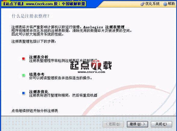 注冊表清理工具我們都知道定期整理磁盤碎片的意義,聽說過注冊表當(dāng)磁盤來整理嗎?AusLogics公司就提供了這樣一個軟件,把注冊表分析出碎片,然后進(jìn)行整理,當(dāng)然,也提供整理報告。