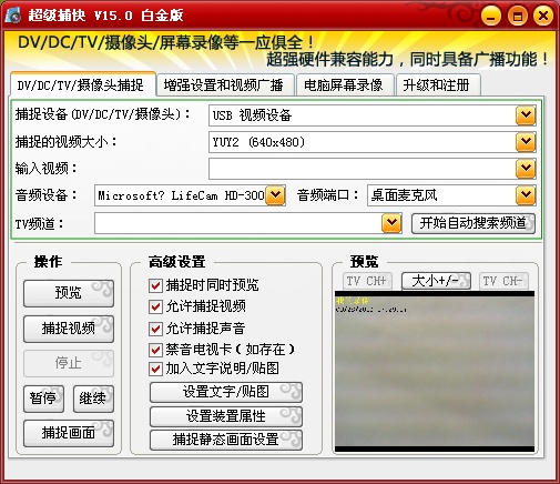 ● 加入最完美WMV9編碼支持,從此您設(shè)置WMV錄像分辨率成為可能,而且廣播視頻將更加流暢清晰!