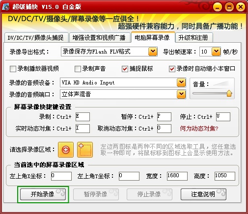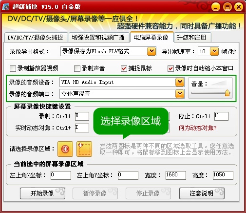四、選擇錄像區(qū)域以及支持錄視頻和聲音