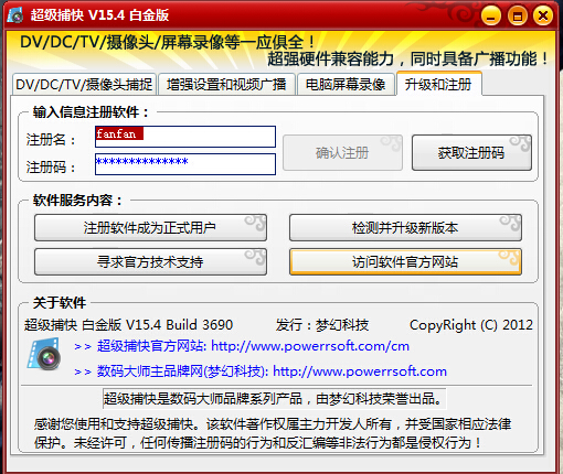 超級捕快白金版是一款國產(chǎn)的優(yōu)秀屏幕捕捉軟件,超級捕快白金版是國內(nèi)首個擁有捕捉家庭攝像機DV、數(shù)碼相機DC、攝像頭、TV電視卡、電腦屏幕畫面、聊天視頻、游戲視頻或播放器視頻畫面并保存為AVI, WMV, MPEG, SWF, FLV等視頻文件的優(yōu)秀錄像軟件。