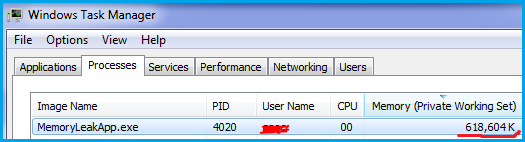 "MemoryLeakApp.exe" 啟動運行后可能占用內(nèi)存600M。