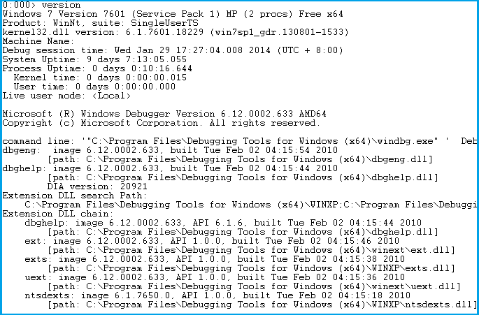 這時你可以輸入 version, 看一下系統(tǒng)的相關(guān)資訊和 Debugger 的版本