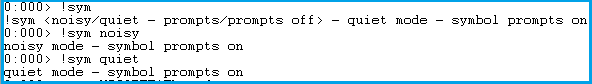 !sym quiet 默認項,不顯示符號搜索信息