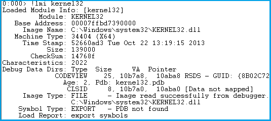 .reload [/f | /v] Module Module 為指定模塊加載符號信息