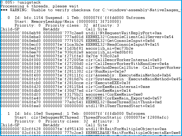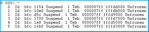 !findstack Symbol [0|1|2] 0=僅顯示線程ID;1=線程ID和幀;2=全部的線程棧;