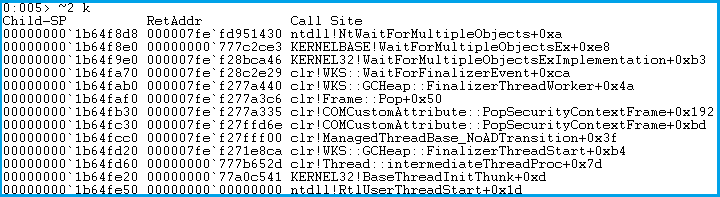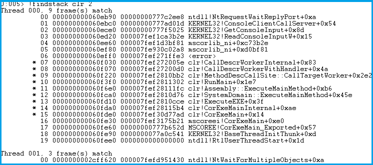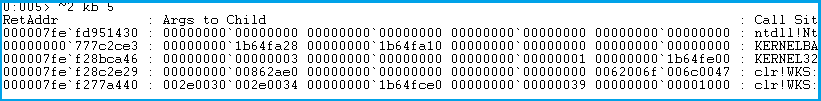 !findstack clr 2 顯示包含 clr 的所有棧的信息