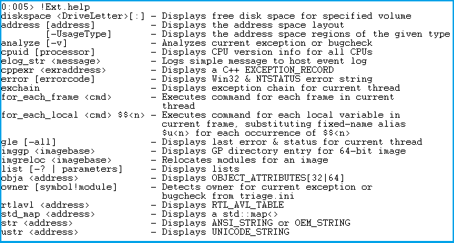 .extmatch /e ExtDLL FunctionFilter 顯示調(diào)試器擴展的所有導(dǎo)出函數(shù)