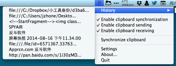 HaveClip一個(gè)開源免費(fèi)的、簡(jiǎn)單實(shí)用的剪貼板管理及同步工具,可以在兩臺(tái)電腦之間同步剪貼板中的內(nèi)容。無需安裝任何第三方軟件,即可實(shí)現(xiàn)跨網(wǎng)傳輸。你可以在本地計(jì)算機(jī)復(fù)制內(nèi)容,然后在另一臺(tái)聯(lián)機(jī)的電腦上粘貼復(fù)制的數(shù)據(jù)。HaveClip軟件能記住最近的99條剪貼板項(xiàng)目。支持Windows, Linux和Mac OS X操作系統(tǒng)。