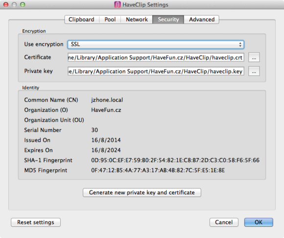 HaveClip 目前支持 Windows、Linux、Mac OS X 等多個(gè)系統(tǒng),作者已經(jīng)開源,你也可以自行進(jìn)行編譯移植。首次運(yùn)行 HaveClip 會(huì)生成一個(gè)用于認(rèn)證的證書,你可以選擇不同的加密方式。