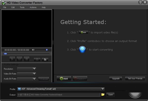 1.完成安裝,開啟 HD Video Converter Factory 后,點(diǎn)擊[Add]加入要轉(zhuǎn)換格式的影片。