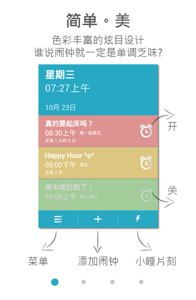 - 色彩豐富的炫目設(shè)計(jì)- 一鍵設(shè)定"小睡片刻"