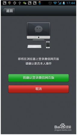 3、然后點(diǎn)擊點(diǎn)擊確認(rèn)登陸微信網(wǎng)頁(yè)版。